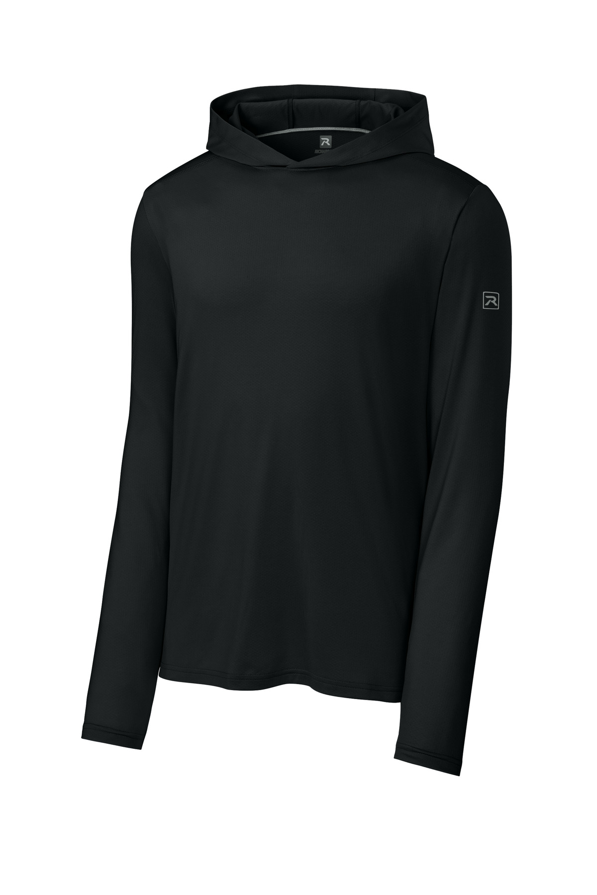 Richardson Clutch Long Sleeve Hoodie RA7110LSHThis breathable long sleeve hoodie tee, constructed with a lightweight polyester/spandex performance fabric, offers moisture wicking and odor fighting, along with color-locking technology to keep logos sharp.,4.1-ounce, 91/9 polyester/spandex pin dot mesh,Color-locking technology,Moisture-wicking,Odor-fighting,Breathable,Three-piece hood,Back neck tape,Forward shoulder seams,Split drop tail hem,Richardson heat transfer logo on left sleeve,**
